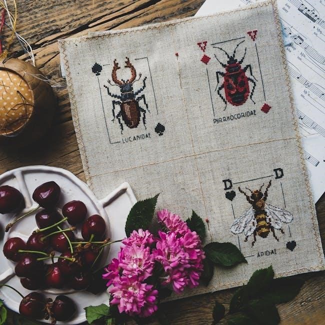 Many free PDF patterns available online cater to beginners, often showcasing basic shapes, alphabets, or small motifs like hearts or flowers. DMC, LoveCrafts, and Fat Quarter Shop frequently offer introductory designs perfect for practicing fundamental stitches. These patterns often include detailed instructions and stitch guides, helping newcomers grasp the basics of cross stitching. Starting with a small, manageable project builds confidence and allows you to learn at your own pace, ultimately fostering a love for this rewarding hobby. Don’t hesitate to begin with these accessible options!